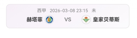 西甲 23:15 赫塔菲 VS 皇家贝蒂斯